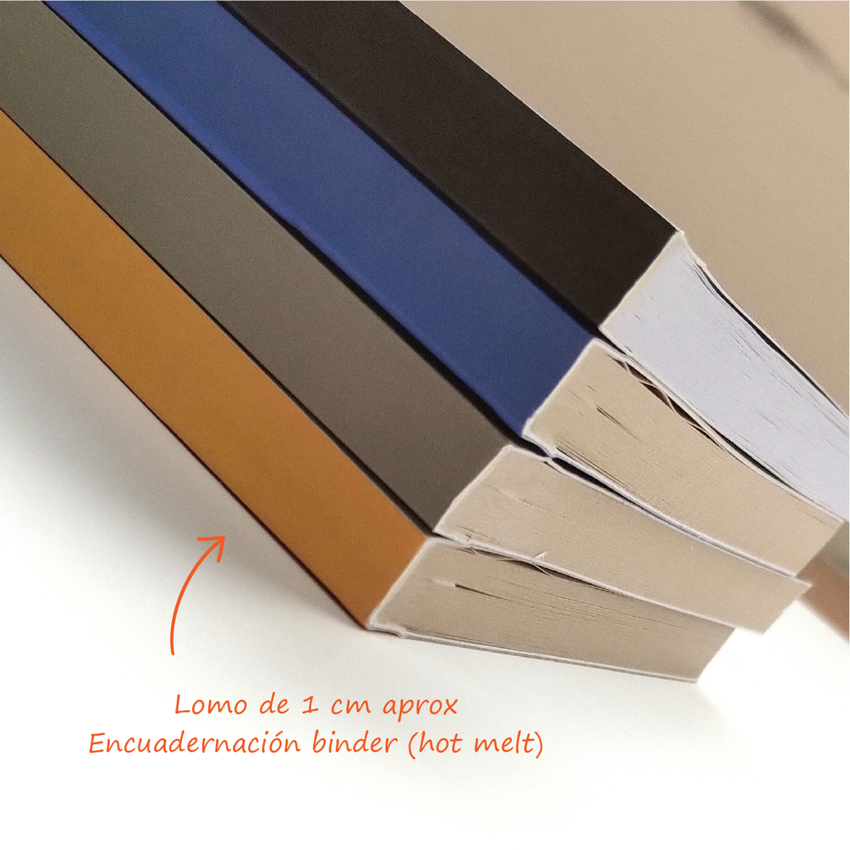 - Tapa y contratapa: impresas a todo color en papel ilustración de 300 g, con laminado mate. La impresión de la tapa y contratapa está siempre incluida. Sin límite de diseños.